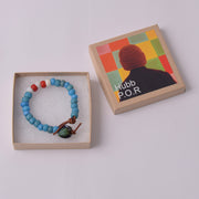 Hubb P.O.R Blue White & Red African Trade Beads Bracelet With Vintage Navy Glass Bead